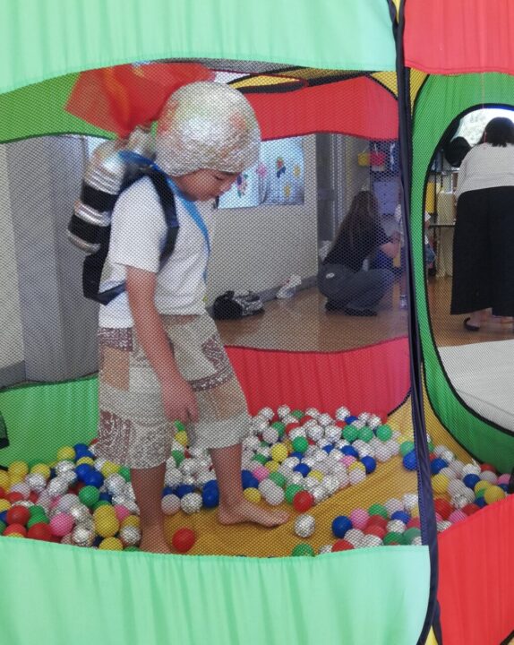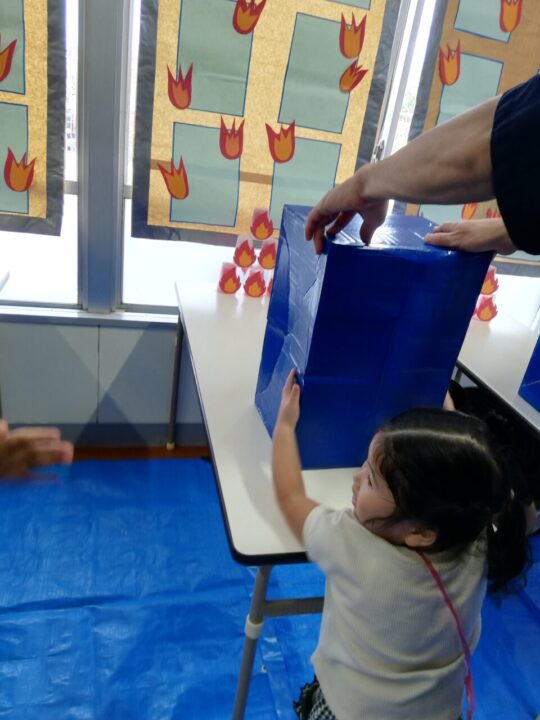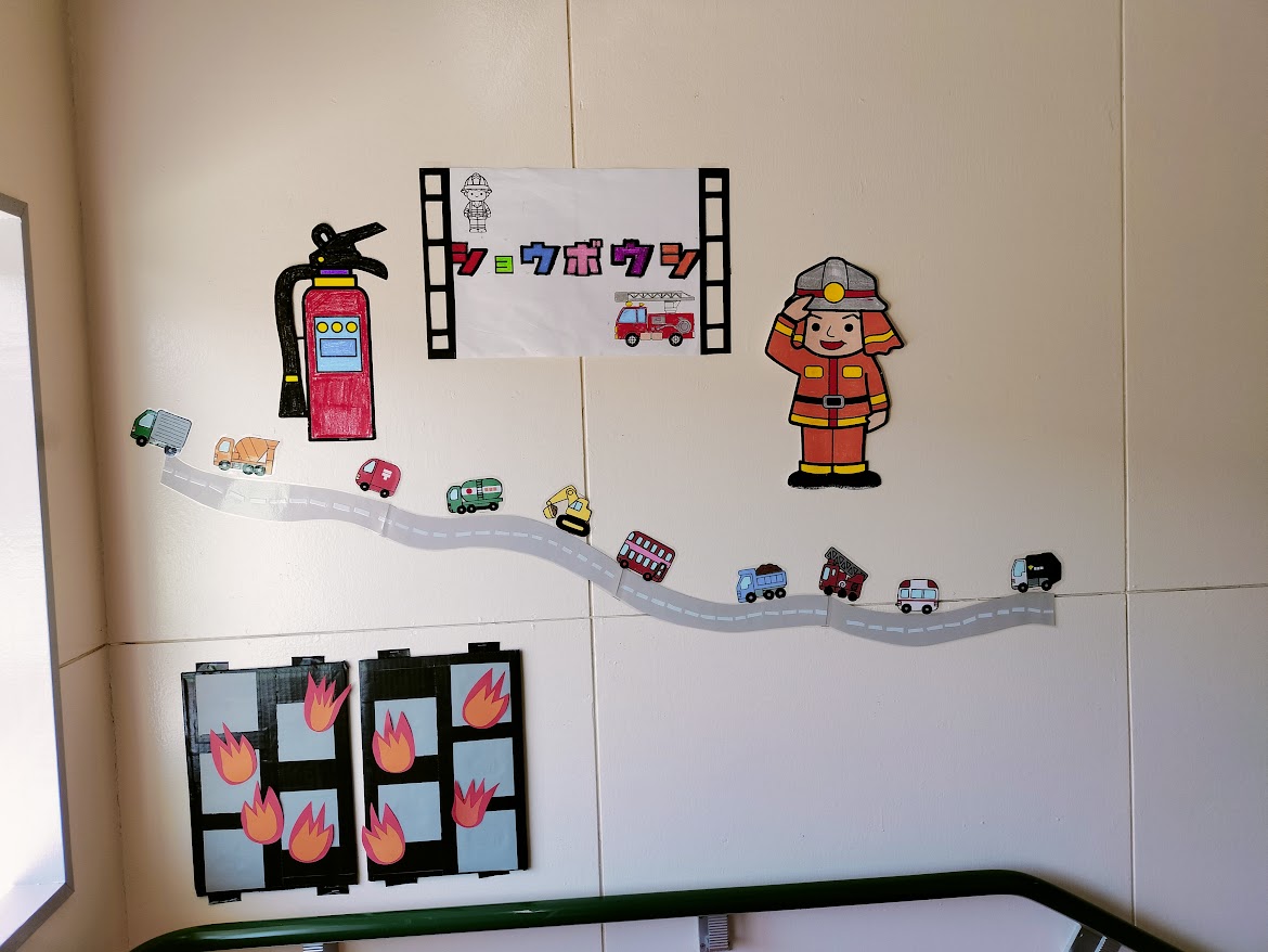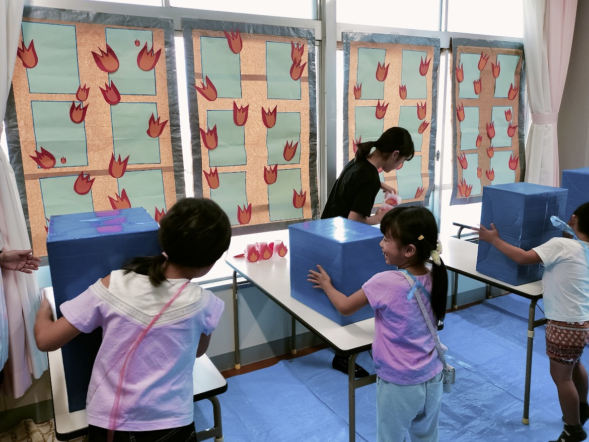 ⑤消防士  児童館を火事から守って! ボンとたたいて火を消そう! 火は消えたかな?