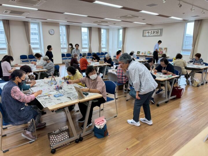 葉栗公民館女性学習講座を第4回(9月30日・34名)、5回(10月7日・31名)2回にわたり岡田勝義先生のご指導のもと「ディンプルアート」作りを行いました。