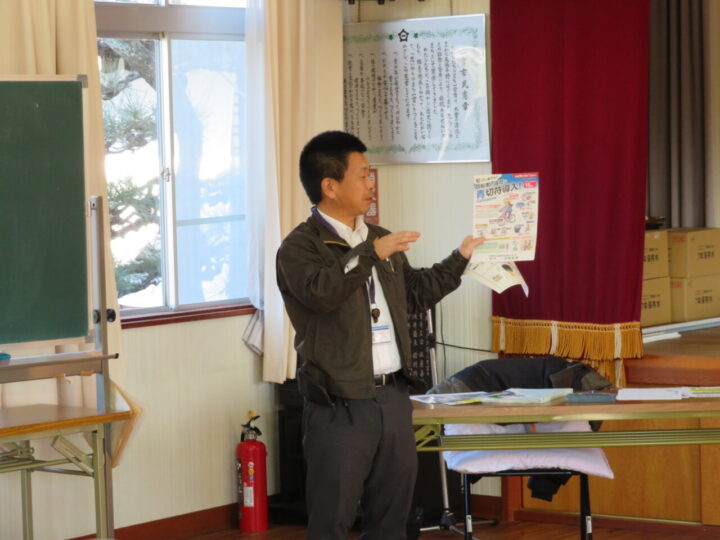 1月10日、杉山公民館にて今年最初の「杉山いきいきサロン」が開催され、地域住民14名が参加しました。まず行われた一宮警察署による講話では、特殊詐欺被害が市内で多発し愛知県下ワースト1位という厳しい現状が伝えられました。参加者は防犯意識を高め、その場で希望者全員が国際電話の利用休止手続きを行うなど、実践的な対策に取り組みました。また、4月から施行される自転車交通法の改正についても熱心な質疑応答が行われました。