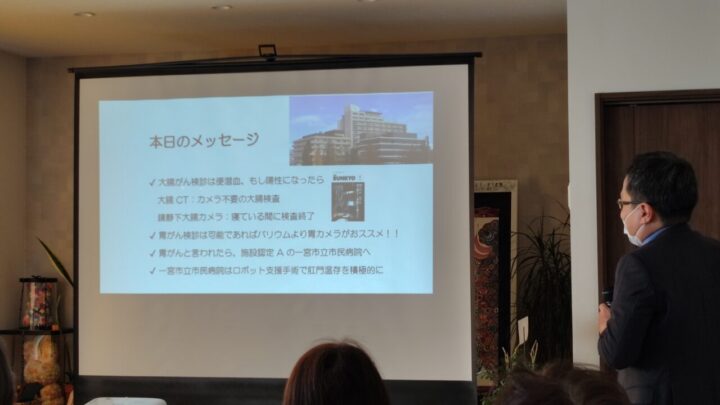 2月19日(木)、なないろ訪問看護ステーション(光明寺)にて、一宮市民病院の消化器外科部長・村井先生を講師にお招きし健康講座が開催されました。